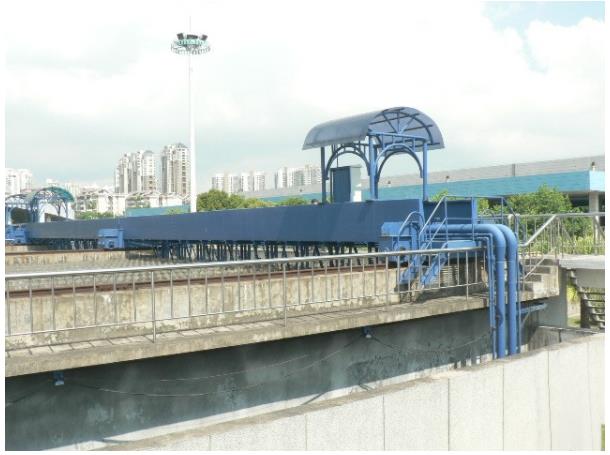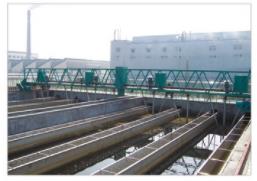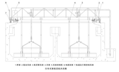 行車式吸泥機適用于污水處理廠平流式沉淀地。其主要功能是將沉降在地底的污泥刮集至吸泥管管口,再 通過吸管排出沉淀池。運行形式是邊運行邊吸泥。