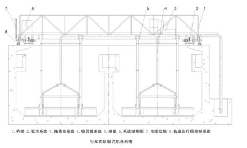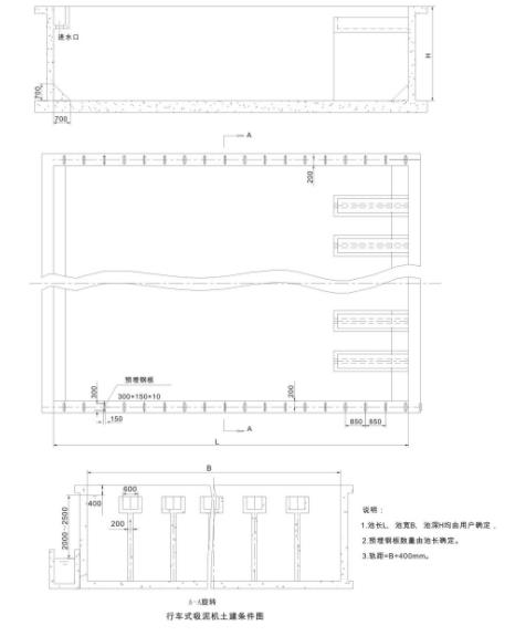 行車式吸泥機根據(jù)吸泥形式的區(qū)別可以分成泵吸混機和虹吸泥機兩種形式 行車式泵吸泥機由工作橋,吸泥管、集泥板、排泥管,液下污混,驅(qū)動機構(gòu)、電控箱等主件和出水三角 板等附件(可選)組成 行車式虹吸泥機由工作橋,吸混管、集泥板,抽真空系統(tǒng)(真空),驅(qū)動機構(gòu)、電控箱等主件和出水三角 板等附件(可選)組成 行車式(虹)吸泥機由四點支撐行走大橫在平流式沉淀地上,雙邊驅(qū)動,地兩邊均鋪設(shè)軌,從地的一 端運行到池子的另一端,邊運行邊吸泥。由兩端行程開關(guān)控制其往復運行。運行和停車時間根據(jù)污泥量由時 繼電器控制 設(shè)備外形圖、技術(shù)參數(shù)和土建條件尺寸見圖表